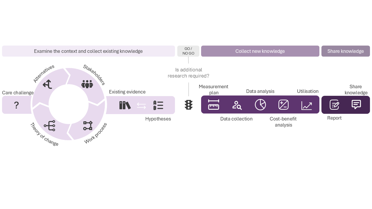 - Phase 2: gather new knowledge. In this phase, you conduct research and gather new evidence for the effectiveness of a digital or hybrid care process.